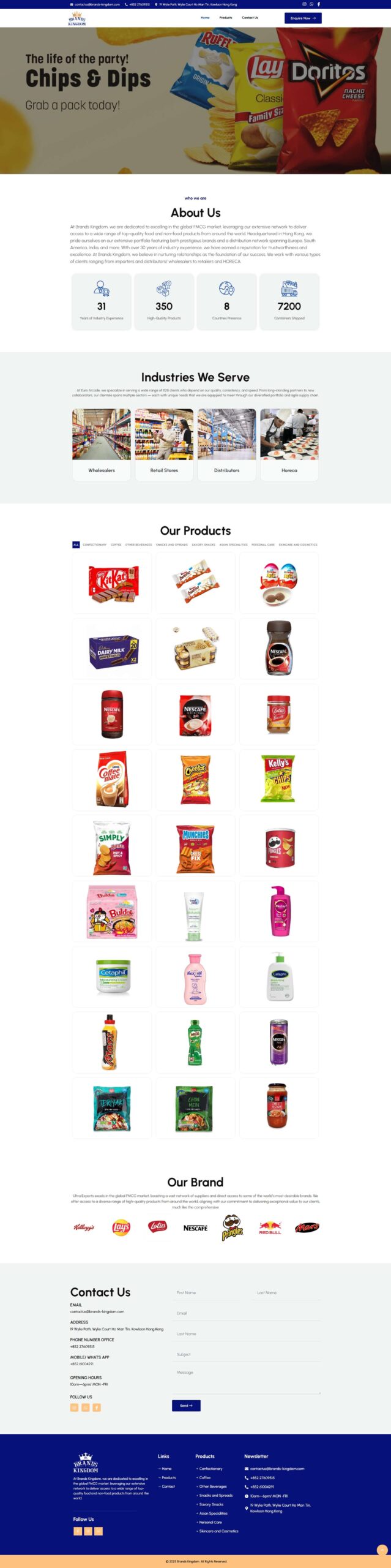 Brands Kingdom is a specialized distribution firm providing expert supply chain and product sourcing services for the global FMCG sector. Led by a team with three decades of expertise, the company focuses on building nurturing relationships between iconic brands and international markets. Their approach combines an expansive product catalog—ranging from confectionery and savory snacks to personal care—with a robust logistics network that has successfully shipped over 7,200 containers worldwide.
