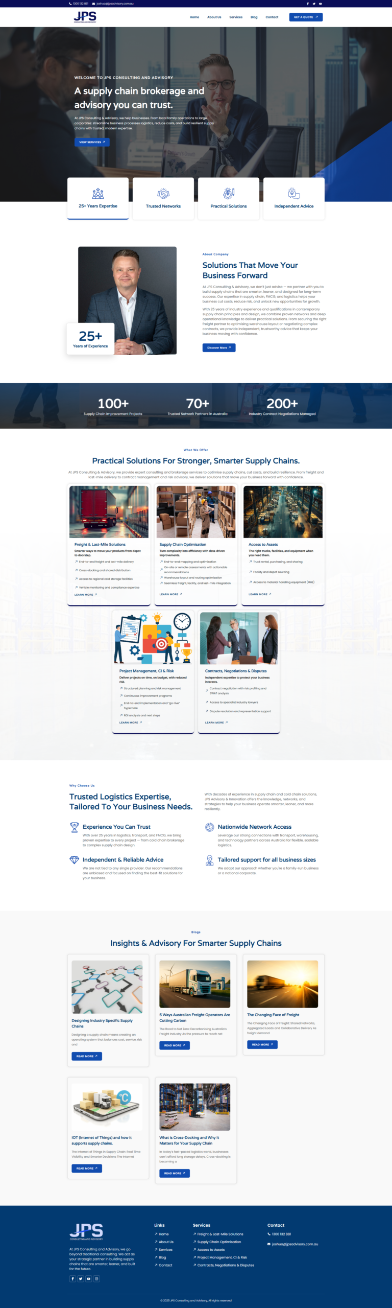 JPS Consulting and Advisory is a specialized Australian firm providing expert supply chain brokerage and advisory services. Led by a team with over 25 years of experience, the company focuses on helping businesses optimize their logistics, reduce unnecessary costs, and improve overall operational resilience. Their approach combines practical, data-driven solutions with deep industry expertise in freight, warehouse management, and FMCG sectors.